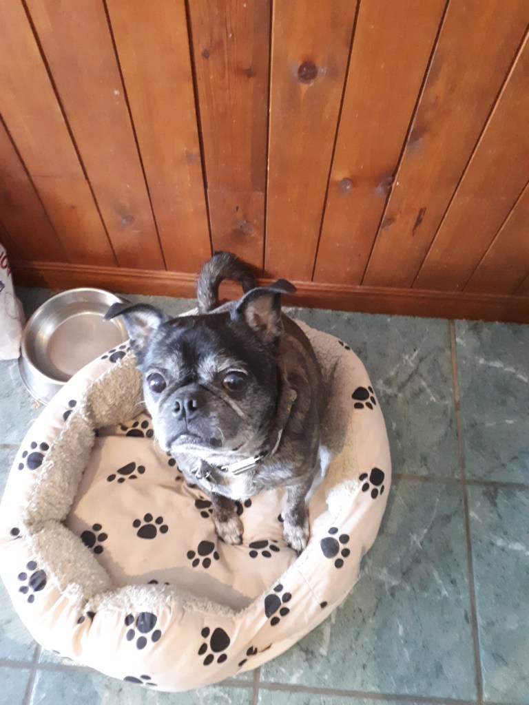 Baxter Aloicious Wrigglesworth is a pug Boston terrier cross of exceptional charm, cunning and voracity. Known for his love of emulating hobbits, he enjoys eating, snacking and sleeping in any available sunbeam or warm lap.